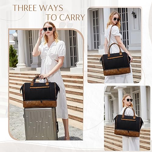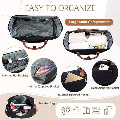 đ«ORGANISATION FACILE: Le sac semaine en toile comprend un grand compartiment principal avec une fermeture Ă glissiĂšre, et une dĂ©coration de rabat en cuir et une manche Ă fermeture Ă©clair Ă lâavant. Ă lâintĂ©rieur, vous trouverez deux poches ouvertes et une poche zippĂ©e pour une organisation pratique. Il est Ă©galement livrĂ© avec une pochette de toilette pour des articles de soins personnels, empilĂ©s facilement et accessibles facilement.