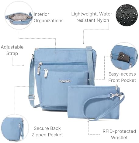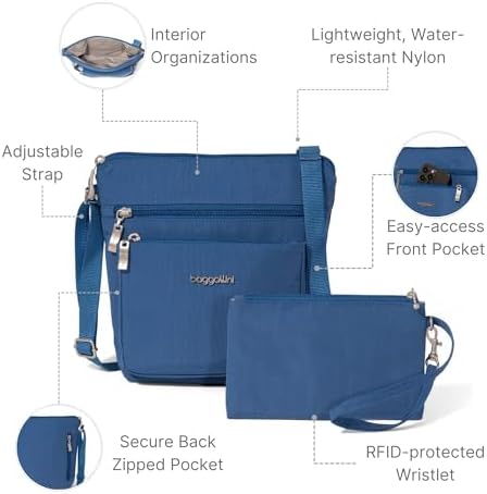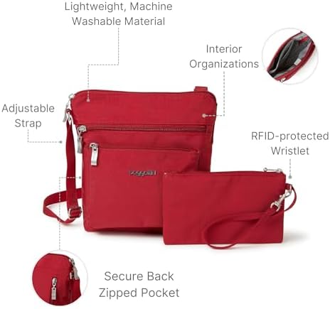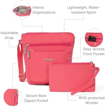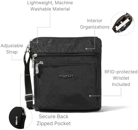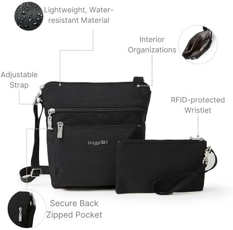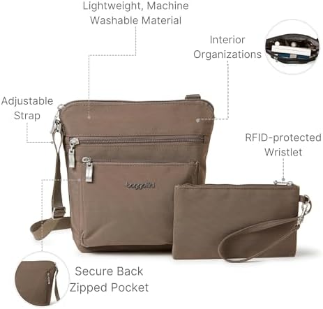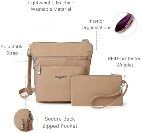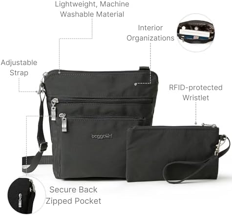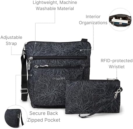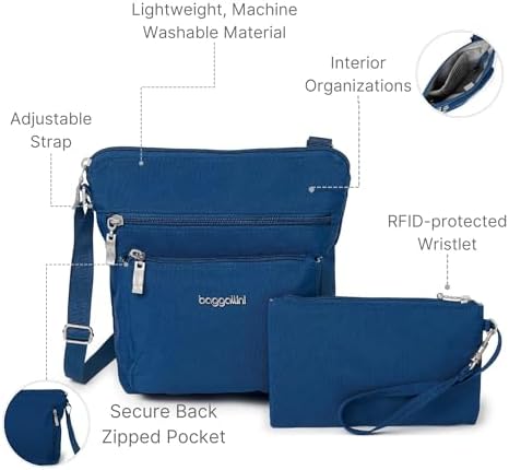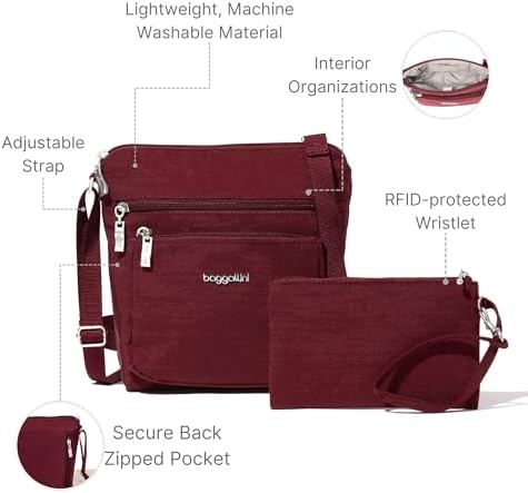 Why opt for Baggallini’s crossbody bag? It combines hands-free functionality with a modern, stylish design. The adjustable crossbody strap offers versatility and comfort, making it a versatile travel essential.